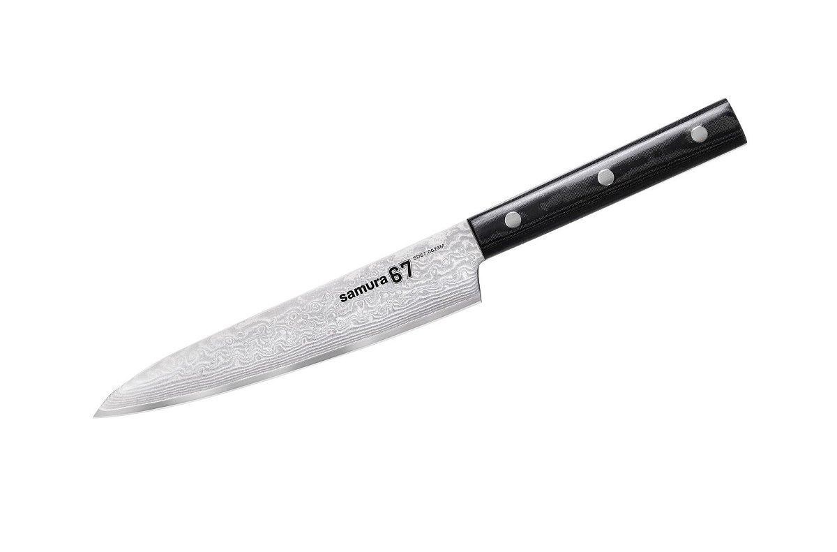 Универсальный нож 150 мм длиной может использоваться как на домашней, так и на профессиональной кухне. Небольшие овощи и фрукты без особо твёрдой кожуры и костей не устоят перед профессионализмом универсала Samura Damascus 67!